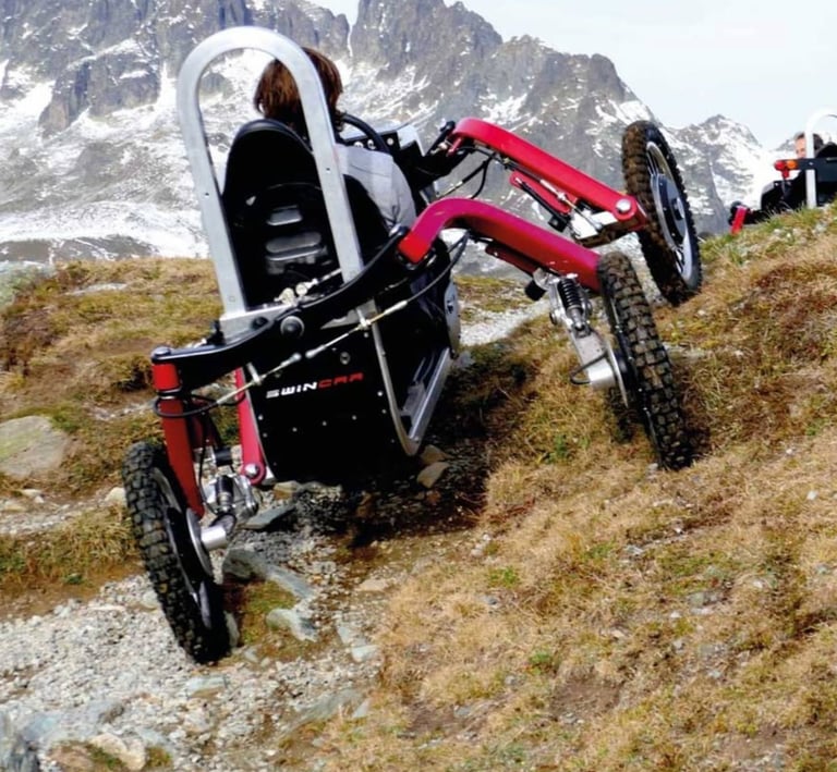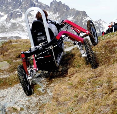 Stap in, neem het stuur in handen en rijd comfortabel over paden waar wandelen lastig is. Dankzij de onafhankelijke aandrijving van elk wiel blijf je stabiel, ook op wisselend terrein. Jij kiest het tempo; de Swincar doet de rest.